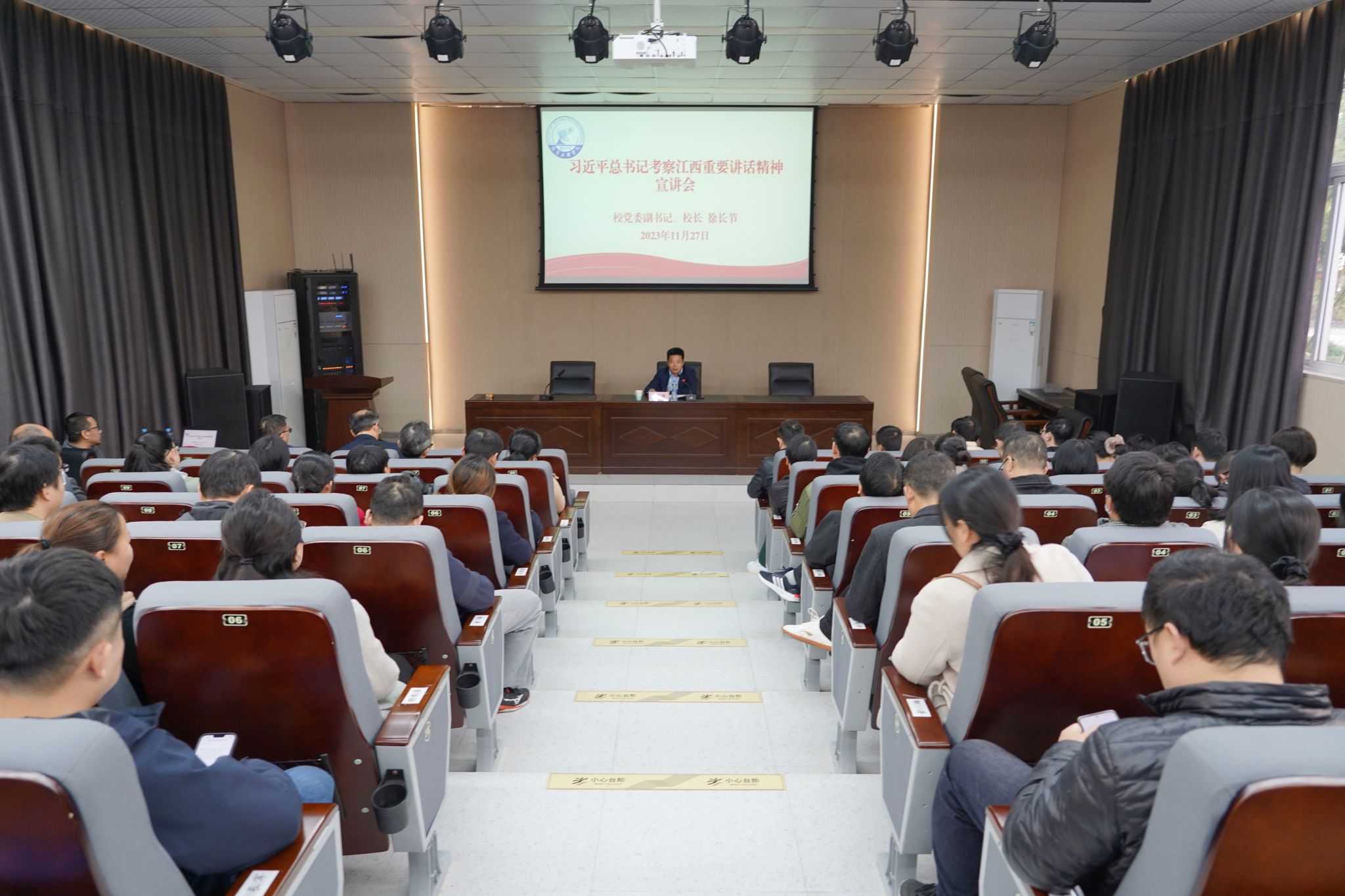 11月27日,校党委副书记、校长徐长节为信息学院全体教职工、学生代表及民盟盟员宣讲习近平总书记考察江西重要讲话精神。
