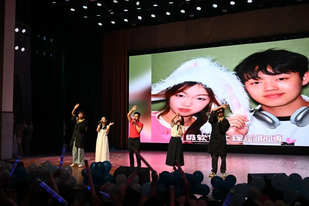 曾伟(教师)、姚雄俊(教师)、韦筱颖(教师)合唱的《我相信》《再见》《启程》饱含了老师们对全体毕业生的希冀。“我相信明天,我相信青春没有地平线!” 老师们褪去讲台的严肃,用歌声传递最温暖的祝福。