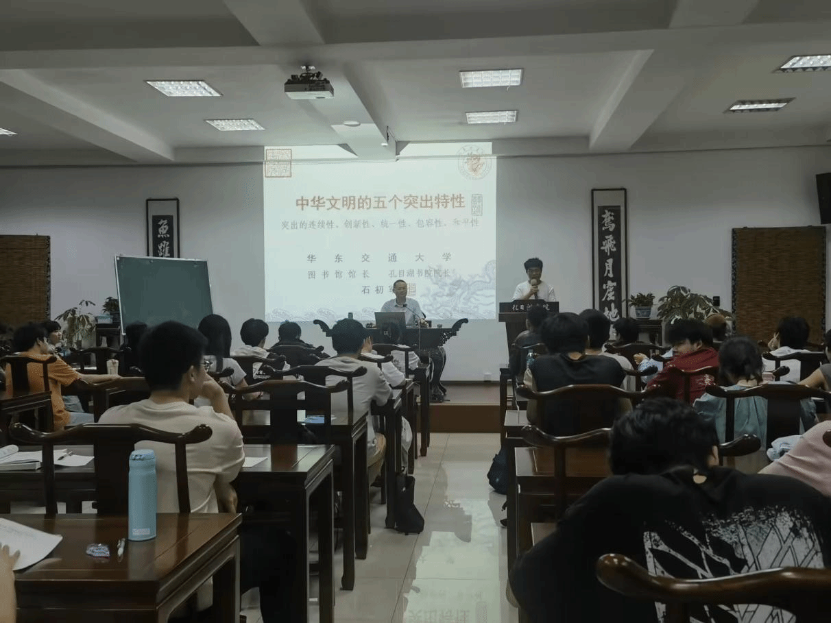 5月9日,信息工程学院分党校于图书馆407举行第六期发展对象党课培训第五讲课程,此次培训邀请WilliamHill威廉希尔图书馆馆长、孔目湖书院院长石初军老师授课。石初军老师以深刻而生动的方式,带领参训学员深入探讨了“中华文明的五个突出特性”,为与会者呈现了一场精神与智慧的盛宴。