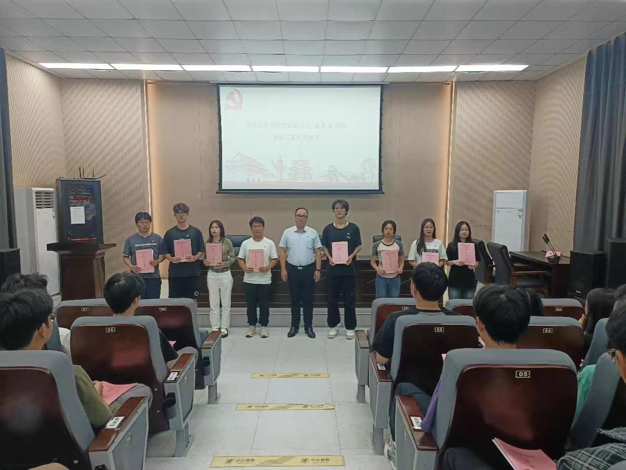 6月3日,信息工程学院在教5栋108报告厅举行2024年春季新发展党员的入党宣誓仪式。院党委副书记冯荣刚出席并讲话。学院学生党员教育管理中心负责同志主持。