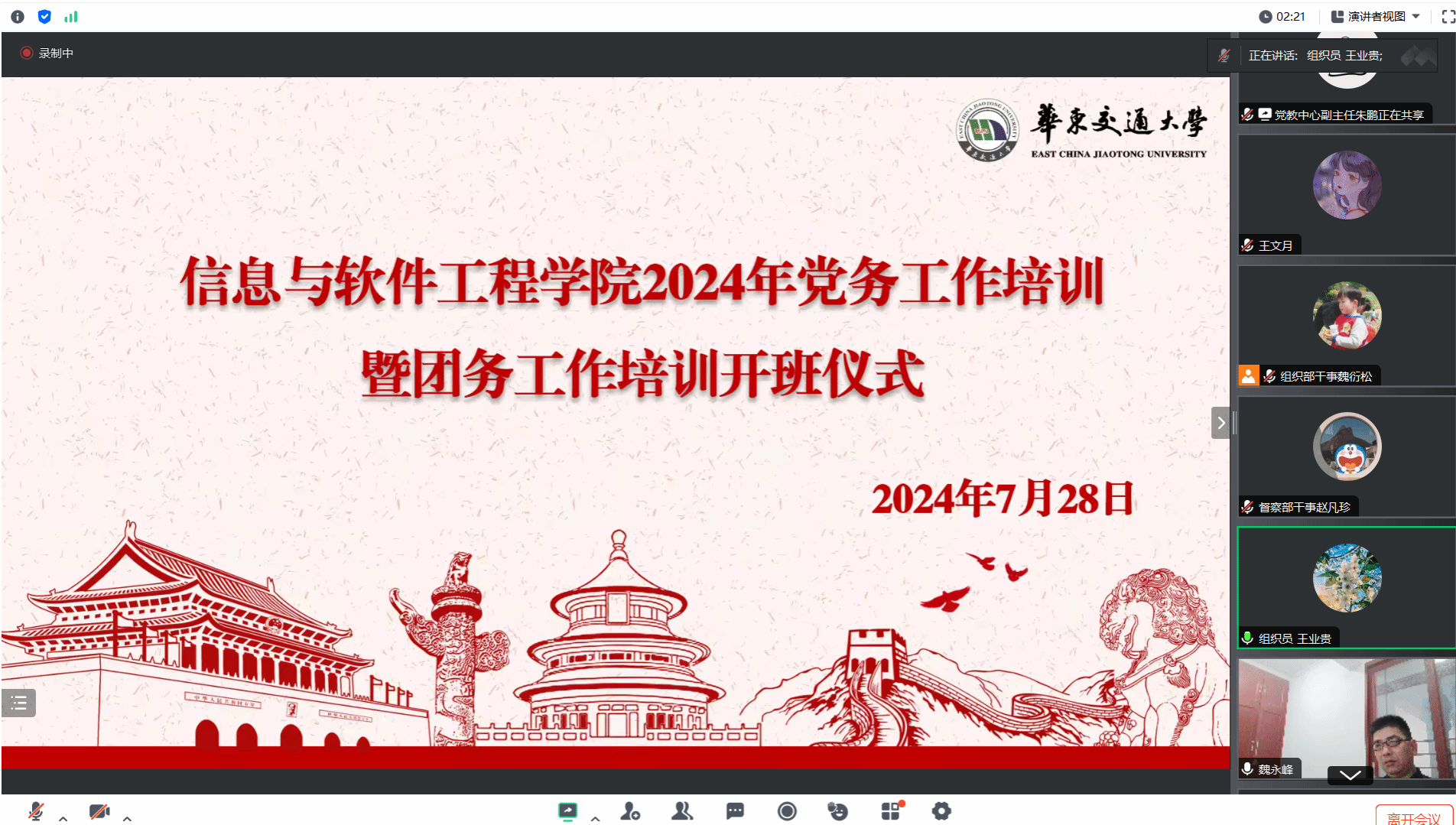 7月28日晚,williamhill英国举行2024年党务工作培训暨团务工作培训开班仪式,院党委书记魏永峰出席并作开班动员讲话。院党委副书记冯荣刚出席,开班仪式由院党委组织员王业贵主持。