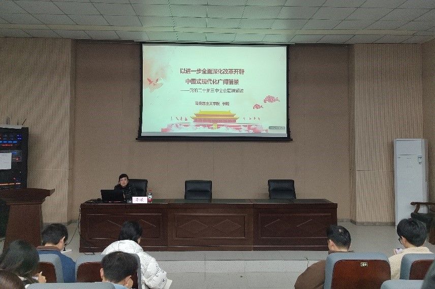 12月3日,williamhill英国分党校于教五栋108报告厅举行第一期发展对象党课培训班第五讲课程,此次课程由马克思主义学院党委副书记、副院长李曦教授主讲,为学员们深入解读党的二十届三中全会精神。