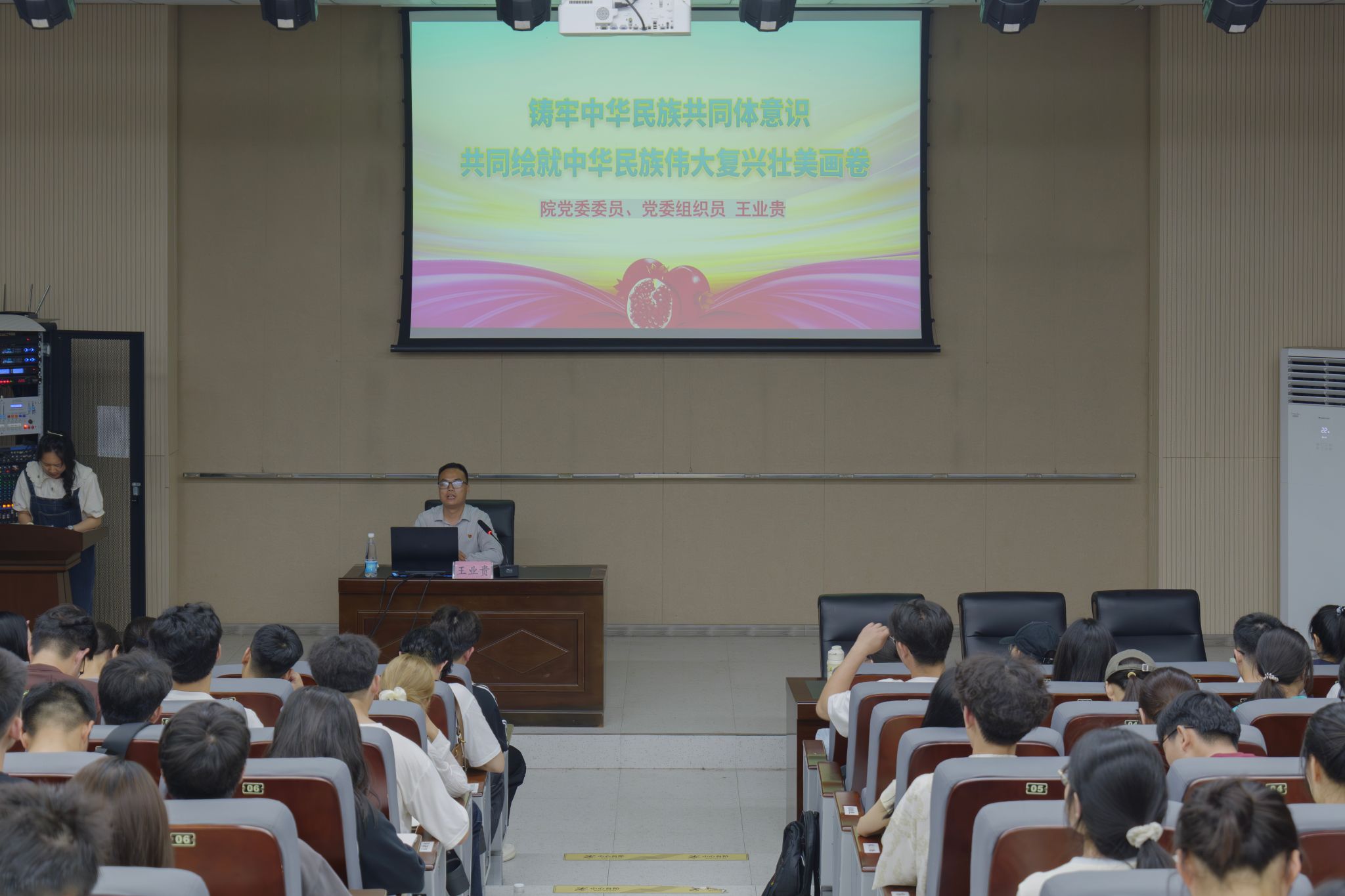 5月17日,williamhill英国分党校于教五栋108报告厅举行第二期发展对象暨入党积极分子培训班第五讲党课。课程以《筑牢中华民族共同体意识,共同绘就伟大复兴壮美画卷》为题,由学院党委委员、党委组织员王业贵主讲,培训班全体学员参加。