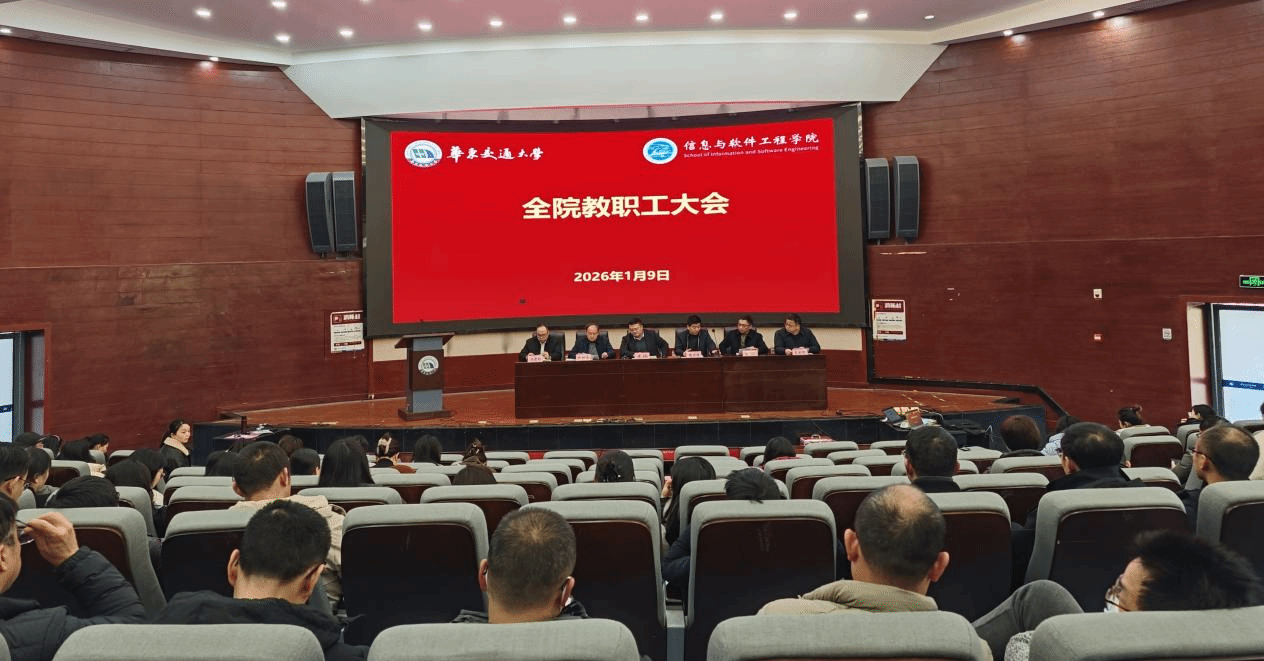 1月9日上午,信工学院在北区图书馆报告厅召开学期末全院教职工大会,全面总结回顾了过去一年学院工作,进一步明确了2026年工作目标和重点任务。学院领导班子及全体教职工参加会议,会议由院党委书记魏永峰主持。