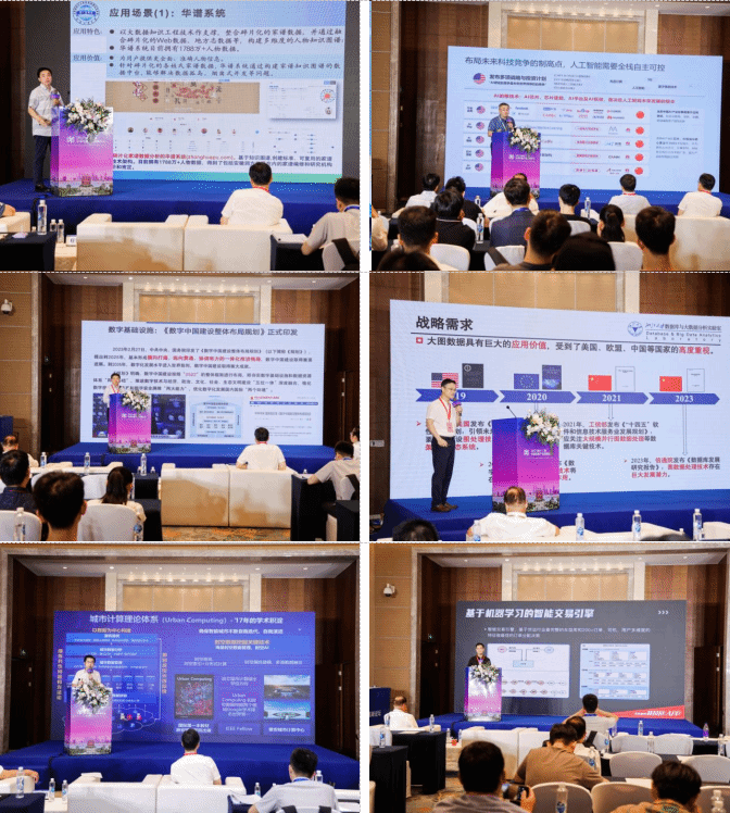 在论坛嘉宾报告环节,首先俄罗斯工程院外籍院士、合肥工业大学“大数据知识工程”教育部重点实验室主任吴信东教授带来了“Chace-KO: 一片连通、综合、容纳、制衡、演化的知识海洋”的主题报告;华为云人工智能领域首席科学家、国际欧亚科学院院士田奇教授带来了“盘古行业大模型”的主题报告;中国科学院计算技术研究所副所长、国家杰青程学旗带来了“大数据分析基础引擎及其实践”的主题报告;浙江大学求是特聘教授、国家杰青/优青高云君教授带来了“大图数据智能管理与分析”的主题报告;京东集团副总裁郑宇教授带来了“城市计算:从理论体系到产业实践”的主题报告;货拉拉 CTO张浩带来了“大数据助力货运生态可持续发展”的主题报告。