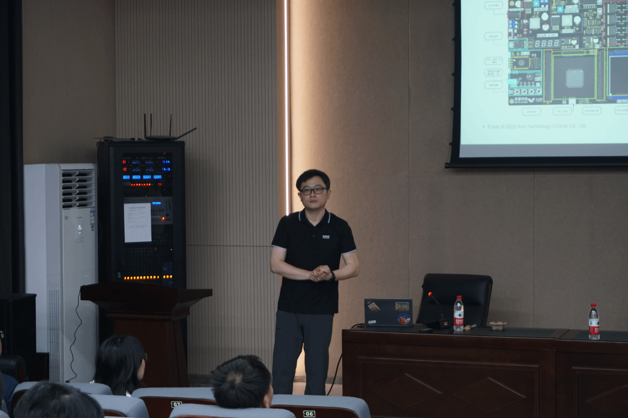 随后,安芯教育技术总监朱焱从安谋科技出发,围绕物联网竞赛的初衷和愿景、基于MOBILENET软件的物体识别系统、安谋赛道的命题解读等等对“安谋星辰数字孪生平台助力智慧物联开发”进行了深入探讨,帮助学生更好地理解和掌握物联网技术。