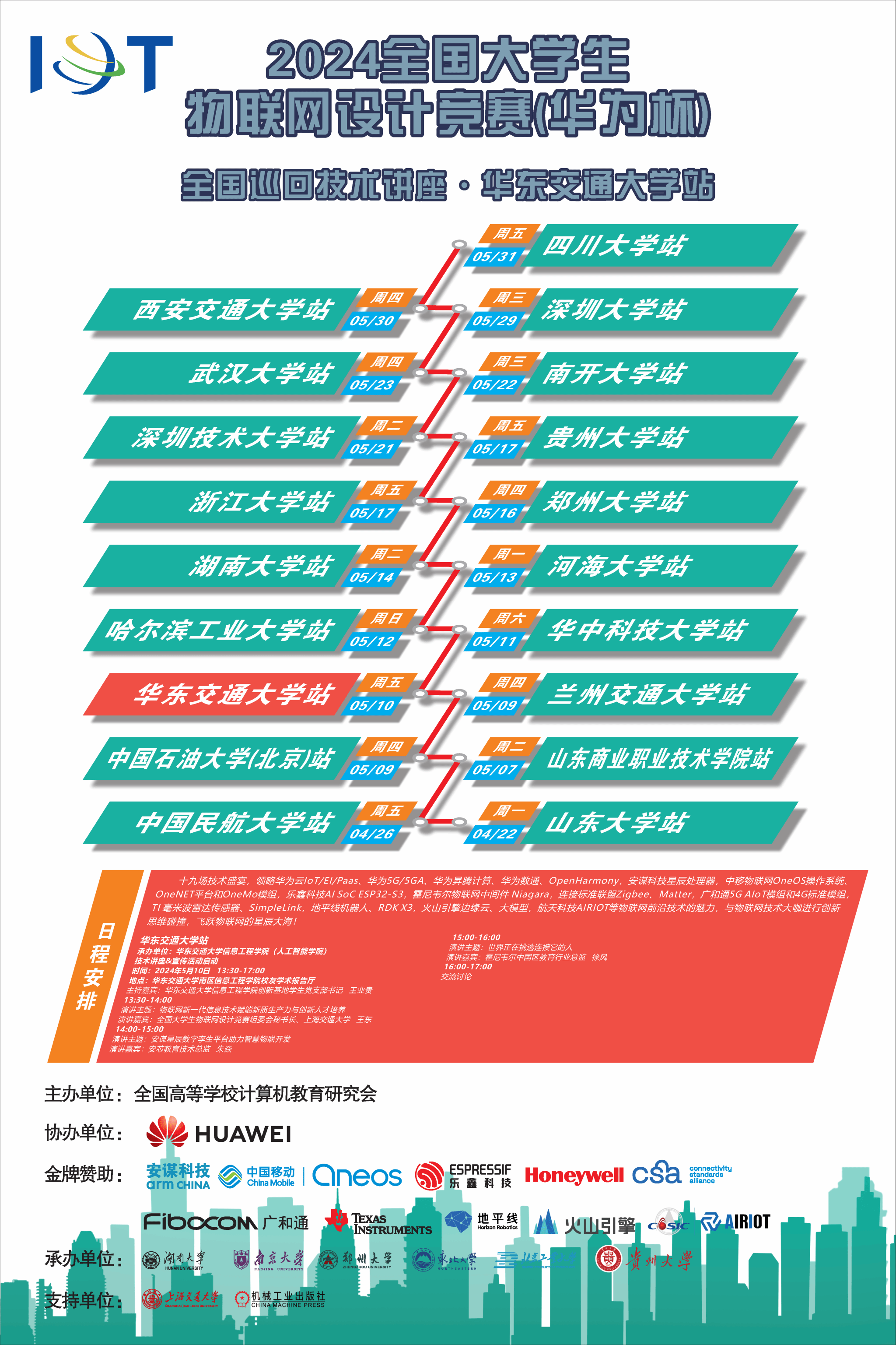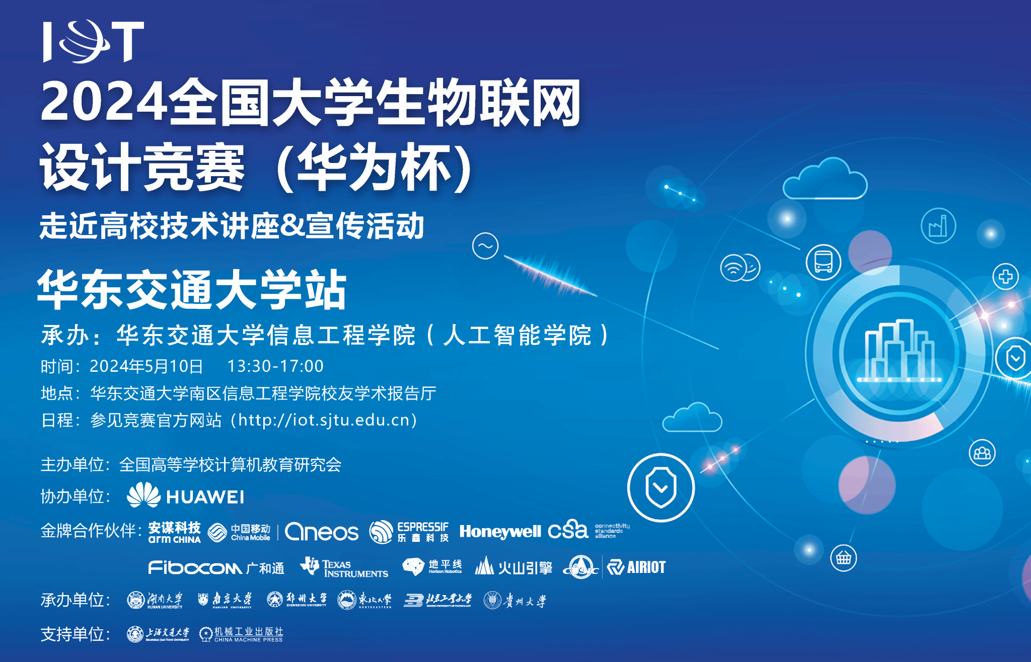 5月10日,“2024年全国大学生物联网设计竞赛(华为杯)走进高校技术讲座&宣传活动”第6场WilliamHill威廉希尔站在信息工程学院校友学术报告厅顺利举行。本次活动由全国高等学校计算机教育研究会主办,华为技术有限公司协办,WilliamHill威廉希尔信息工程学院(人工智能学院)承办。