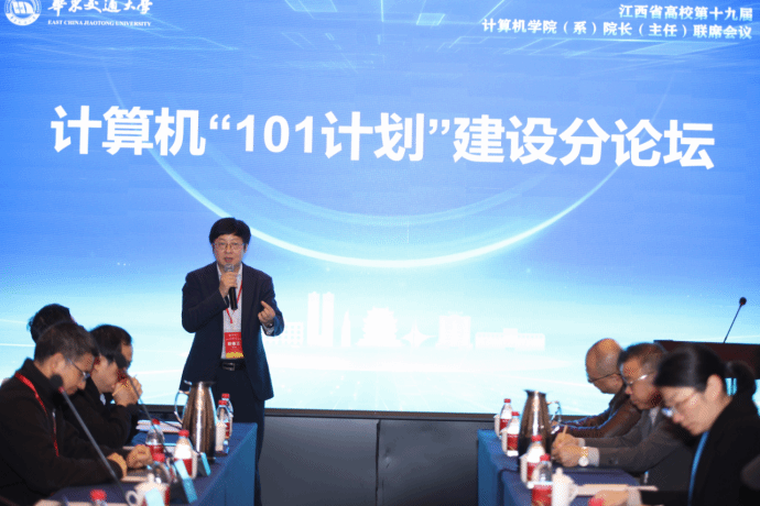 本届会议首次增设“计算机‘101项目’建设分论坛”,聚焦计算机核心课程体系与工程实践能力培养。国防科技大学首席教授毛新军基于教育部“101计划”建设成果,分享了软件工程课程在教学方法、实践体系与考评机制方面的系统性改革经验,为高质量计算机人才培养提供了实践范例。论坛汇聚了江西省“101计划”工作组、各高校计算机学科负责人及一线教师代表,就课程建设理念、实践教学创新及本省“101计划”实施路径展开了热烈讨论,体现了对计算机基础学科拔尖创新人才培养的高度重视。
