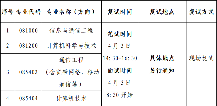 备注:具体见学院后期公布的考场名单,笔试、面试均需带好本人身份证原件。