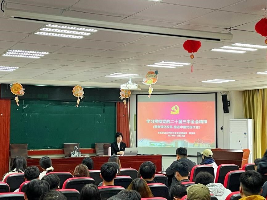 在宣讲会上,主讲人蔡雪婷围绕中国共产党第二十届中央委员会第三次全体会议公报主要内容,深入学习领会党的二十届三中全会的重大意义、习近平总书记在党的二十届三中全会上的重要讲话精神、全面准确理解《决定》提出的进一步全面深化改革重大举措,结合自身的学习体会,用通俗易懂的语言,对全会精神进行了生动诠释。