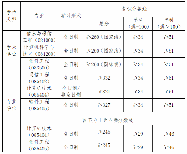 一、一志愿复试分数线基本要求