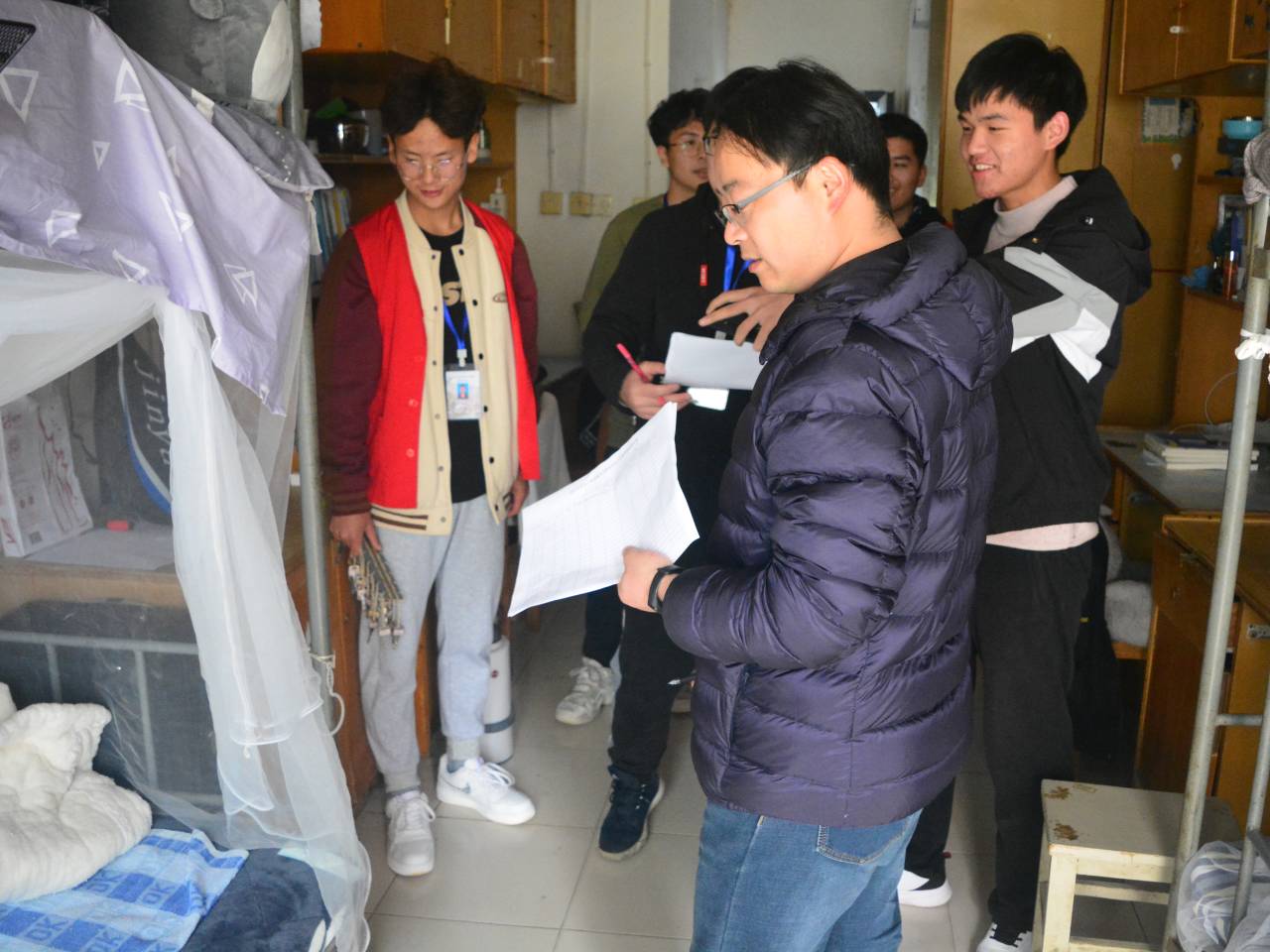 为了解寝室最真实状况,切实保障同学们生活环境的卫生和安全,信息学院党委副书记何仲坚,学工办副主任艾国金,杨青,20级计算机类辅导员李萌萌在3月18日,开展突击查寝,学生会生活权益部成员跟随检查。