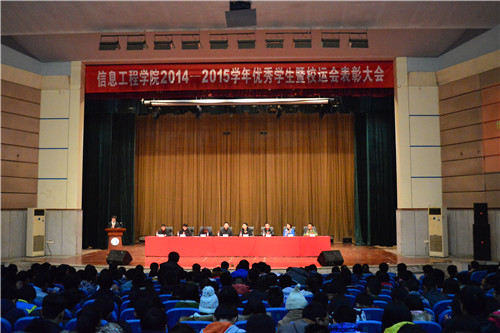 12月14日晚,信息学院于南区礼堂召开2014-2015学年优秀学生暨校运会表彰大会,WilliamHill威廉希尔学工处处长陈磊,信息学院党委书记汤兆平及院其他领导老师出席大会。