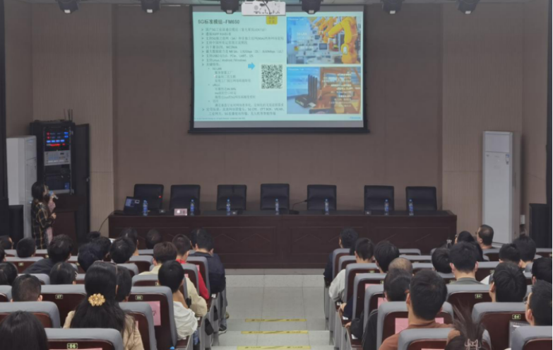 广和通校企合作工程师朱蓉蓉带来了主题为“应用5G/4G标准模组建设物联网通信基座”的演讲。她详细介绍了5G和4G标准模组FM650和L610这两块开发板在竞赛中的应用,并向同学们展示了如何学习并使用这些开发板。