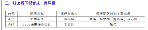 近日,教育部官网公布首批国家级一流本科课程认定结果,我院有1门课程《Java语言程序设计》入选(线上线下混合式一流课程1门)。