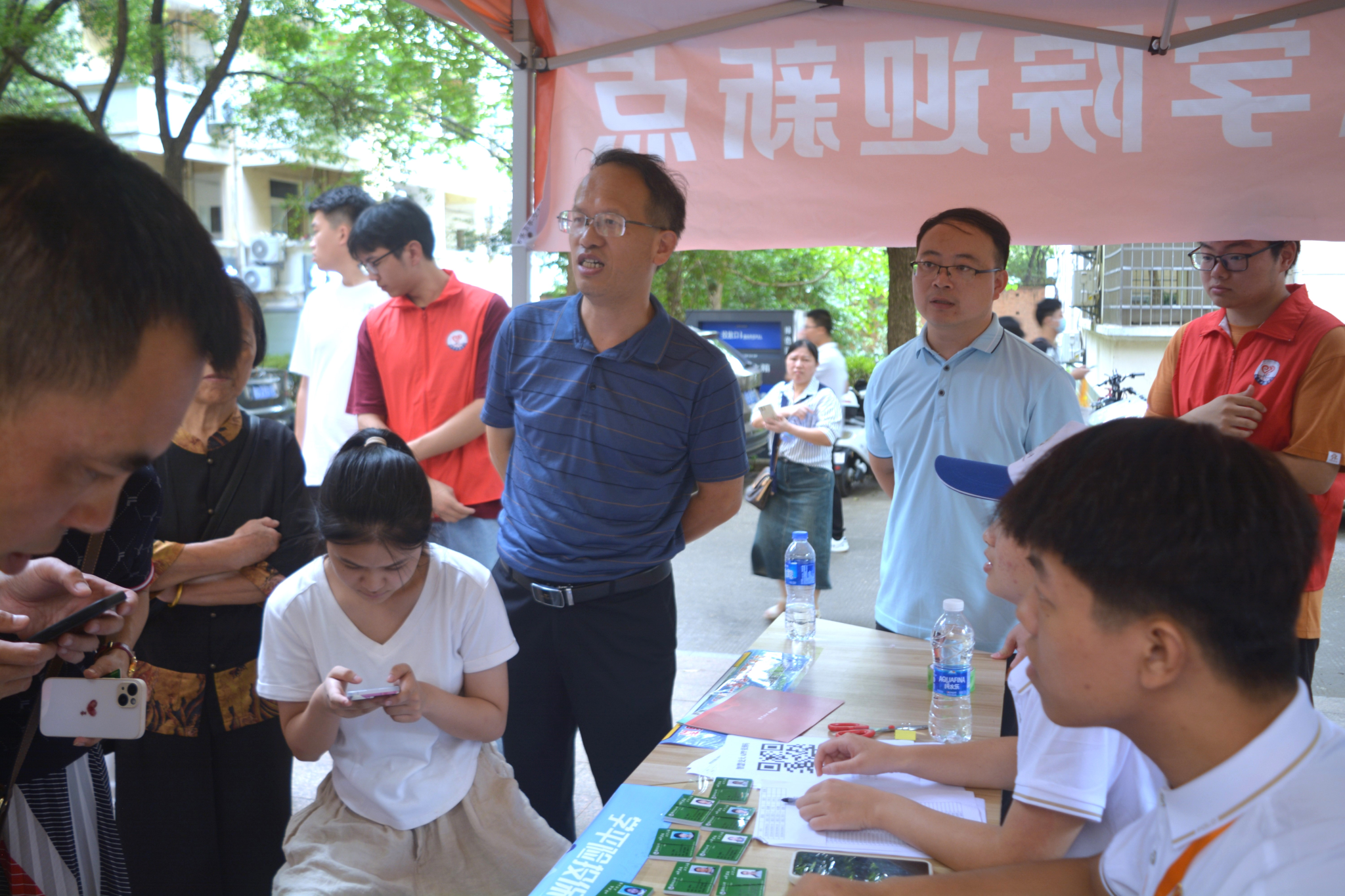 信息工程学院党委书记何仲坚、学工办主任艾国金心系新生,一齐来到新生报到地点了解具体情况并前往宿舍看望新生,与新生及其家长亲切交谈,殷切的嘱托令远来求学的新生们减少了紧张与不安,切身的关怀使新生们更快的融入大学生活。
