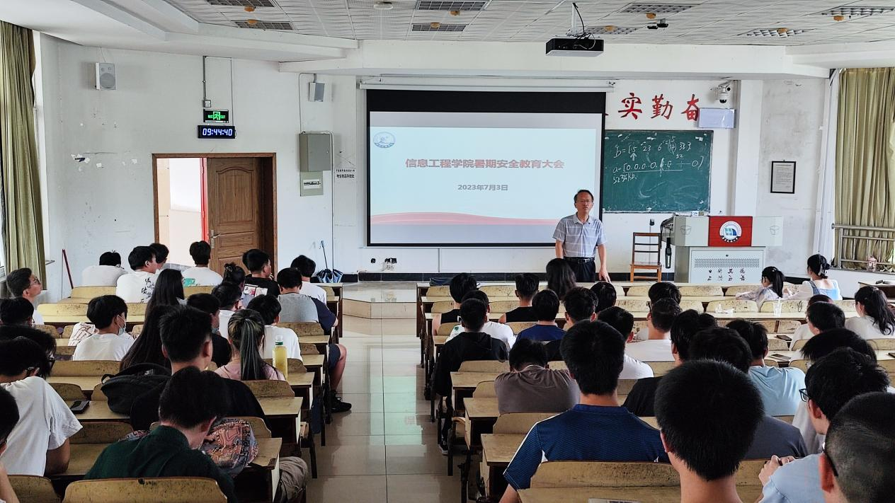 为加强暑期留校学生安全意识,7月3日,信息学院于图书馆203室召开留校学生安全教育大会,信息学院党委书记何仲坚作指导讲话、辅导员洪亚聪出席会议,全体留校学生与会。