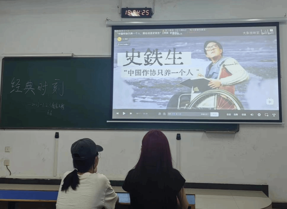 为提升同学们的人文素养,提升思想境界,信息学院通信工程2023-1、2、3班于6月6日在逸夫楼415教室开展了第二十一次“经典时刻”活动——观看视频《寻找史铁生》。