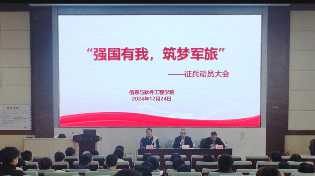 为激发青年学子报效祖国、献身国防的热情,12月24日,信工学院在南区图书馆202召开“强国有我,筑梦军旅”2025届毕业生征兵动员大会。院党委副书记冯荣刚、校武装部征兵负责人王玉军、退役士兵大学生代表、毕业班辅导员及2025届全体毕业生参会,会议由院团委副书记洪亚聪主持。