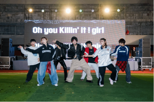 信工学院文工团舞蹈组14名成员带来的活力开场舞《爱的主打歌》为这场草坪音乐节拉开完美序幕。跃动的节奏与轻快的旋律迅速点燃全场,为晚会奠定了热情洋溢的基调。