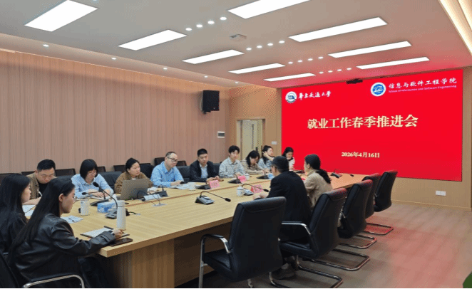 为进一步推进学院2026届毕业生就业工作,打赢毕业生就业攻坚战,4月16日上午,学院2026年春季就业工作推进会在教26栋901会议室举行。招生就业处副处长周寰辰一行来院调研学院就业工作,院党委书记魏永峰出席会议,就业干事、各毕业班辅导员参会,院党委副书记冯荣刚主持会议。